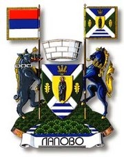 На штиту лаповачког грба је Света Параскева, заштитница Лапова. Бели крст симболизује Лапово као раскрсницу путева. Три класа жита, у горњем делу штита, су симбол пољопривреде, а храстово лишће, са леве и десне стране штита — шуме. Ливада и река представљаjу Поморавље. Вепар са стрелом забоденом у главу је чест симбол у овом делу Србије (Топола, Крагујевац, Чумић), везује се за Шумадију. Плави коњ са десне стране представља Мораву (стара реч «морав» значи тамно плаво).